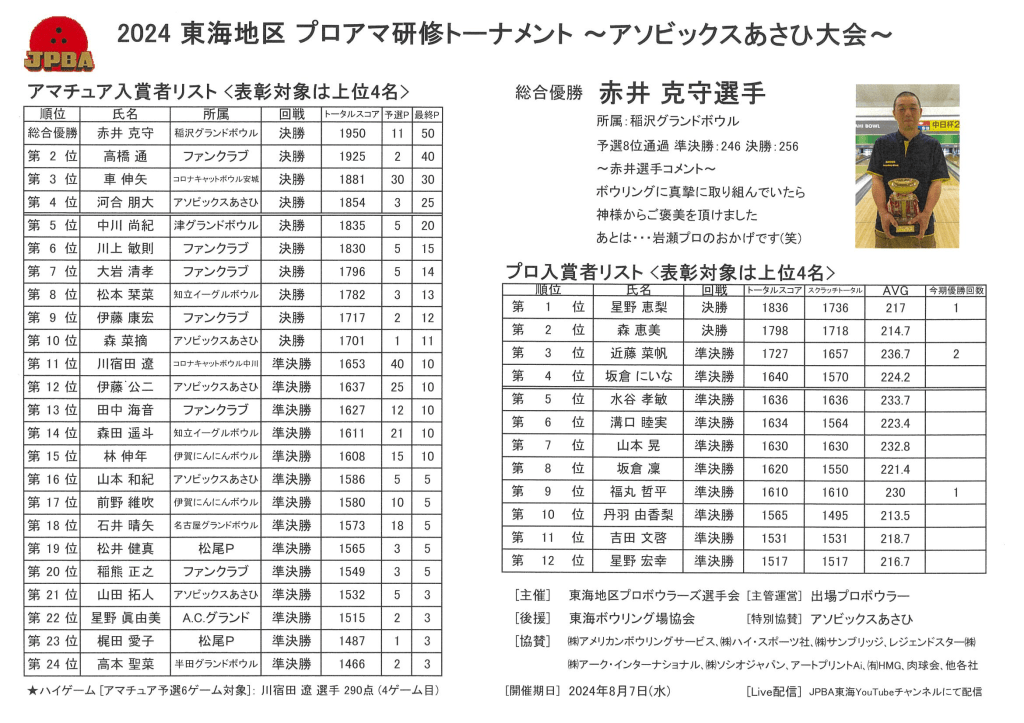 2024/8/7 アソビックスあさひ大会 投稿者:jpbatokai2024年8月15日2024年8月15日カテゴリー:プロアマ研修トーナメント結果 プロの部 アマの部 アマシニアの部 ジュニアの部 共有: クリックして X で共有 (新しいウィンドウで開きます) X Facebook で共有するにはクリックしてください (新しいウィンドウで開きます) Facebook いいね 読み込み中… 関連