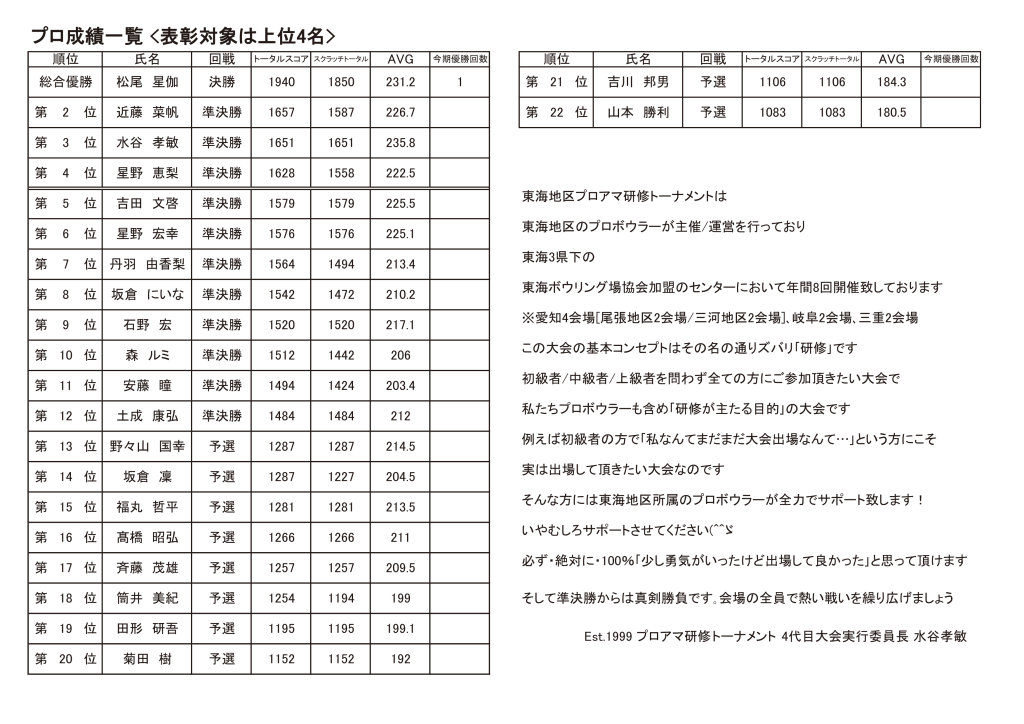 2025/2/19 稲沢グランドボウル大会 投稿者:jpbatokai2025年2月21日2025年2月24日カテゴリー:プロアマ研修トーナメント結果 プロの部 アマチュアの部 299賞(提供:肉球会様) 299賞(提供:肉球会様) プロの部優勝・松尾星伽より締めのご挨拶 共有: クリックして X で共有 (新しいウィンドウで開きます) X Facebook で共有するにはクリックしてください (新しいウィンドウで開きます) Facebook いいね 読み込み中… 関連